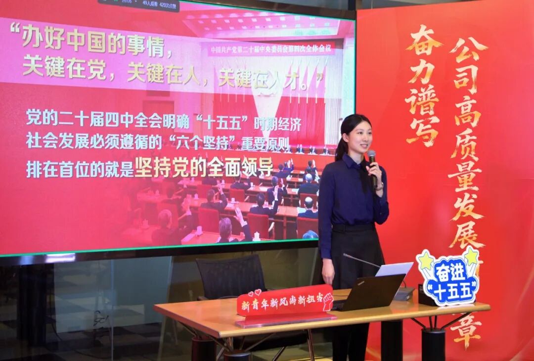 理論闡釋“見深度”,在精學細悟中把握核心要義。宣講員們緊扣全會提出的新思想、新論斷、新部署,精心選題、深入闡釋,通過原原本本學原文,深入解讀戰(zhàn)略部署的深刻內(nèi)涵與實踐要求,以扎實的理論功底確保宣講有深度。實踐轉(zhuǎn)化“求效度”,在知行合一中破解發(fā)展難題。結(jié)合公司國際業(yè)務(wù)三年登高行動,解讀“積極擴大自主開放”的戰(zhàn)略部署;聚焦“持之以恒推進全面從嚴治黨”戰(zhàn)略部署,探討如何以高質(zhì)量黨建引領(lǐng)和推動高質(zhì)量發(fā)展,等等。他們堅持用“小切口”講透“大道理”,在聯(lián)系實際中找準行動方向,切實把學習成果轉(zhuǎn)化為推動公司高質(zhì)量發(fā)展的實干成效。形式載體“增鮮度”,在守正創(chuàng)新中彰顯青春風采。在公司“紅色直播間”、在業(yè)務(wù)一線、在項目現(xiàn)場,青年宣講員們運用短視頻、PPT等“接力”宣講。2個月共開展30余場宣講,通過“短、實、新、活”的宣講模式,講理論、談體會、亮擔當,打通理論傳播“最后一公里”,有效推動黨建工作與業(yè)務(wù)實踐同向發(fā)力、深度融合。